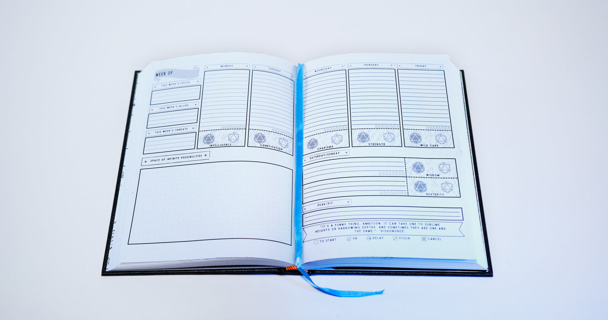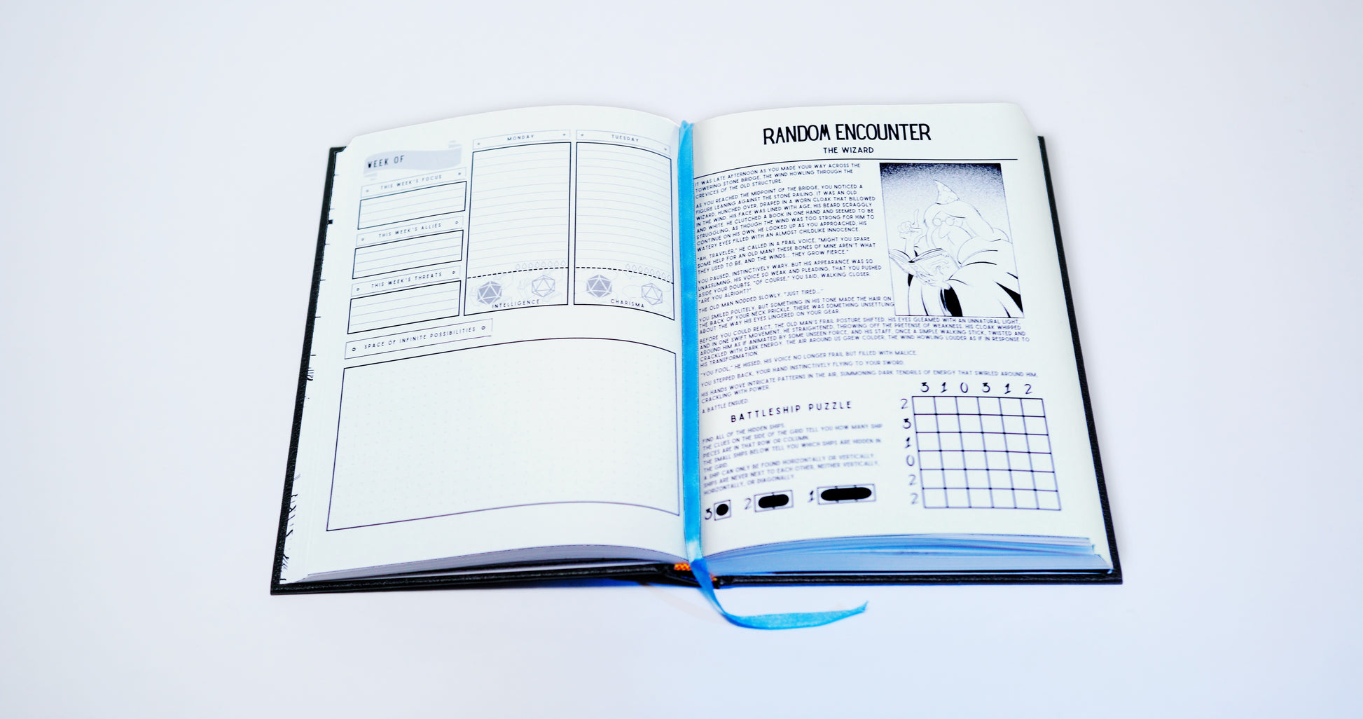 Imagine this: a combination of Dungeons & Dragons and a weekly planner. That’s SoloQ, a role-playing game and weekly planner in one! Designed to elevate your days, SoloQ is a character-driven adventure that relies on you leveling up and completing quests throughout the year. By merging the fun, exciting elements of a story-driven campaign with the addictive nature of leveling up a character, all while also allowing you to keep track of your personal adventures and side quests, you’ll be less likely to put the planner aside and more likely to crush goals, slay dragons, and having fun doing it!